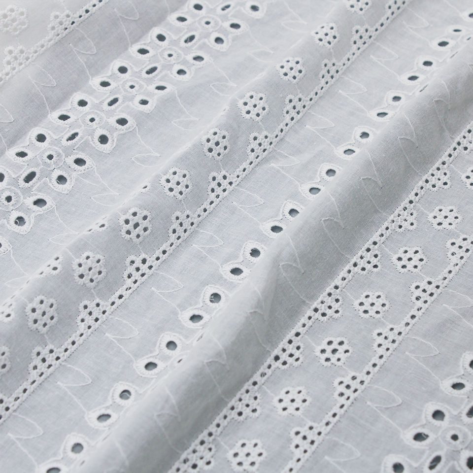 Enhance your fashion creations with this premium cotton eyelet embroidery fabric, designed to offer durability, elegance, and versatility for all your clothing designs.