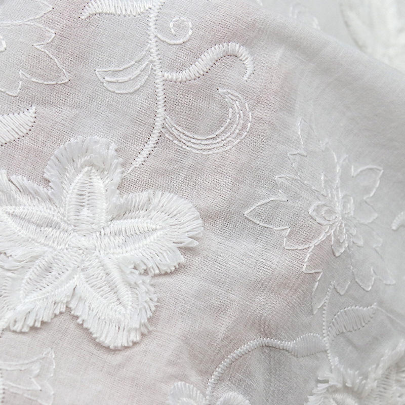 Elevate your creations with our Custom Fancy Elegant Soft 100% Cotton Lace Fabric. This exquisite embroidered lace features intricate designs, perfect for wedding dresses, bridal accessories, and special occasion attire. Soft to the touch and beautifully detailed, it adds a touch of sophistication and charm to any garment.