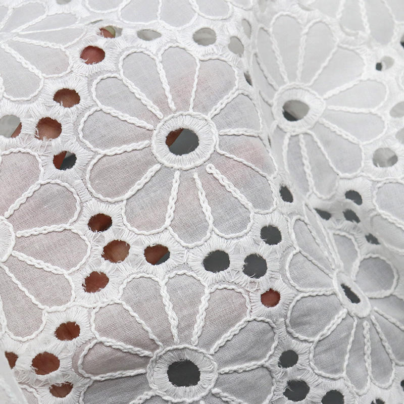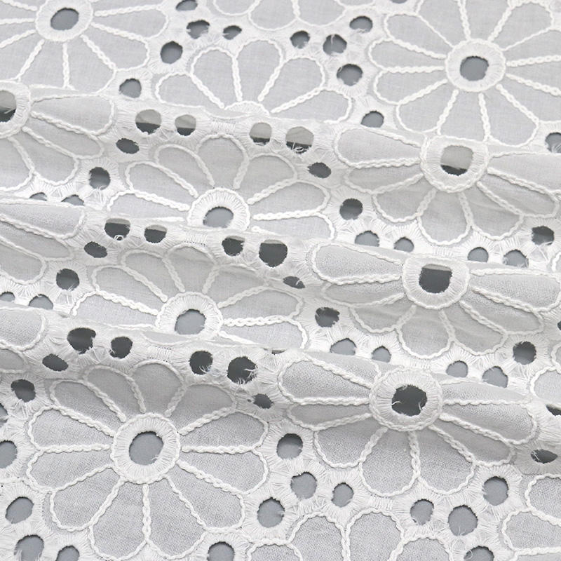 Elevate your bridal collection with our Custom Fancy Eyelet Lace. Crafted from 100% premium cotton, this heavyweight fabric offers the perfect balance of traditional elegance and modern structural integrity for high-end dressmaking.