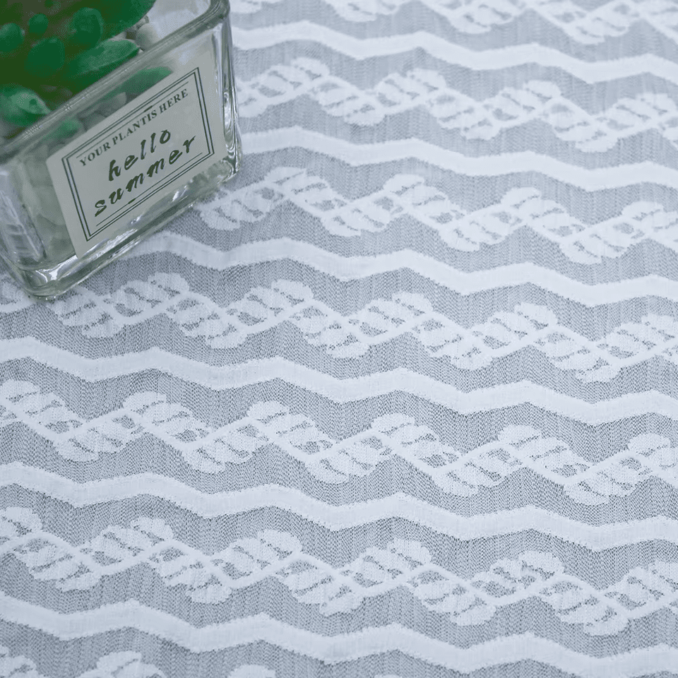 Elevate your creations with our Factory Wholesale Designer Fabric in pure white spandex/nylon mesh lace. This exquisite, lightweight lace features intricate patterns perfect for crafting elegant wedding dresses, bridal accessories, and special occasion attire. Enjoy the perfect blend of stretch and style, making it ideal for both comfortable wear and stunning designs.