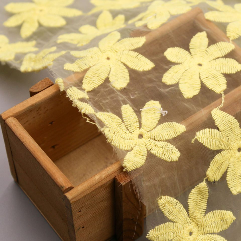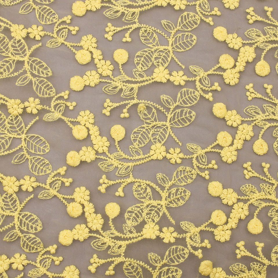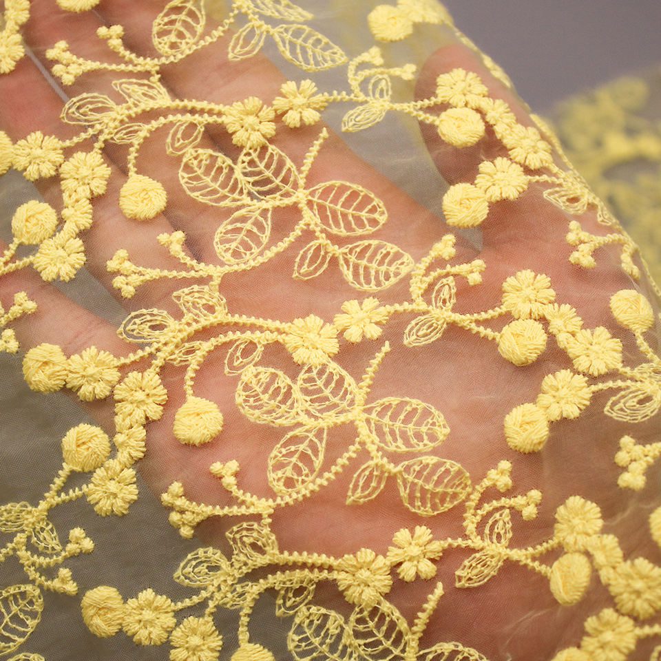 Elevate your fashion creations with our High Quality Mesh Lace in vibrant yellow. Crafted from 100% polyester, this embroidered organza fabric features intricate designs perfect for dresses, skirts, and accessories. Ideal for special occasions or everyday wear, it combines durability with elegance, making it a must-have for any designer’s collection.