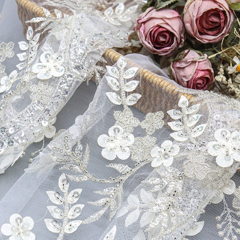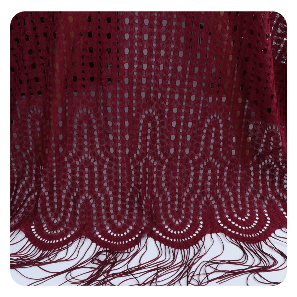 Elevate your fashion creations with our Luxury 100% Nylon Tulle Flower French Fringe Embroidery Chantilly Lace Fabric. This exquisite lace features intricate floral designs and a delicate fringe, perfect for crafting elegant dresses, bridal wear, or sophisticated home decor. Experience the beauty and versatility of this stunning fabric in your next project.