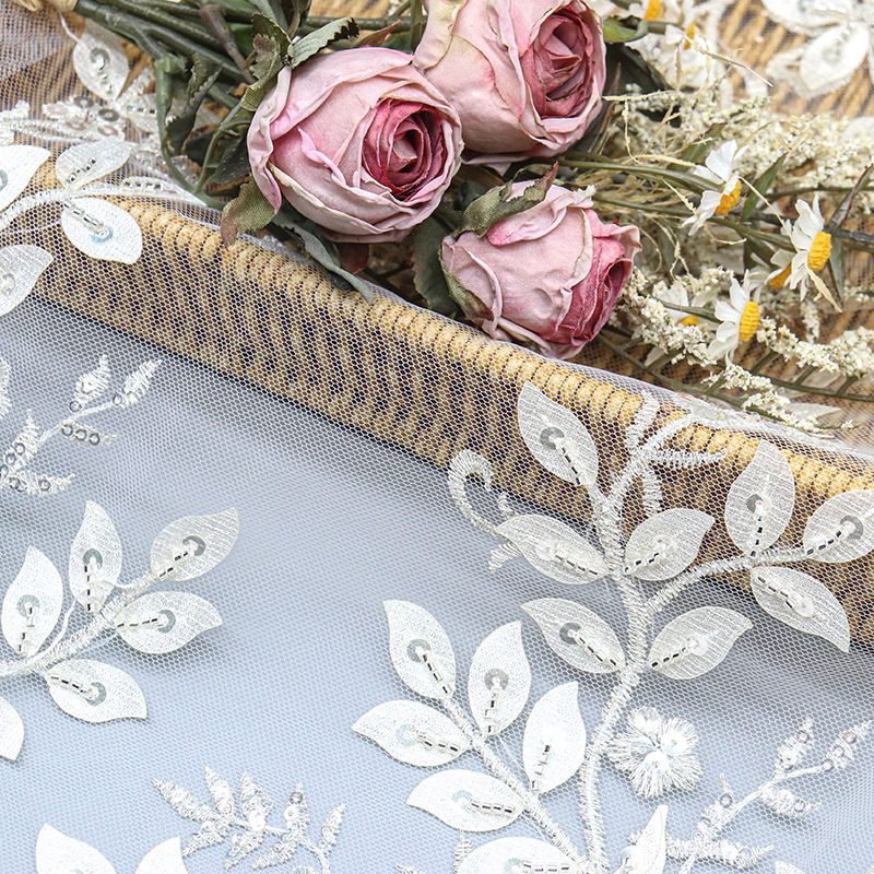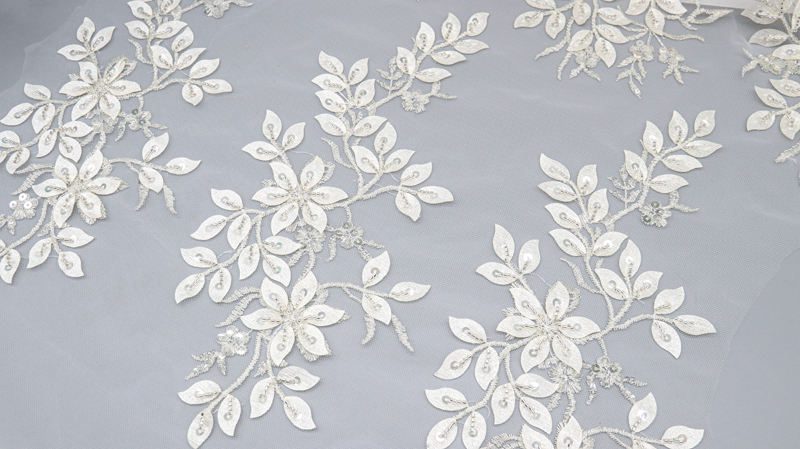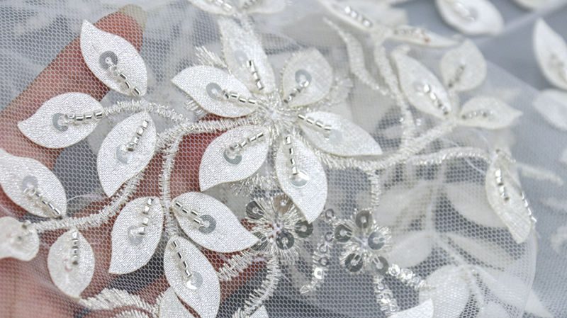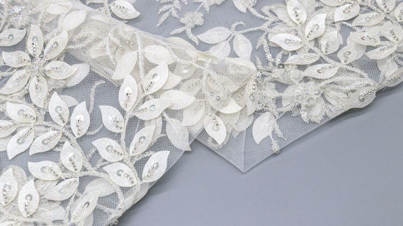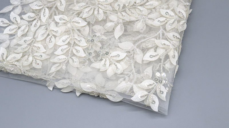 Elevate your bridal look with our Hot Selling 3D Lace Fabric featuring luxurious sequins. Crafted from high-quality materials, this exquisite lace adds a touch of elegance and sophistication to any wedding dress. Perfect for bridal gowns, veils, and other special occasion attire, it ensures you’ll shine on your big day.