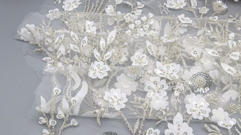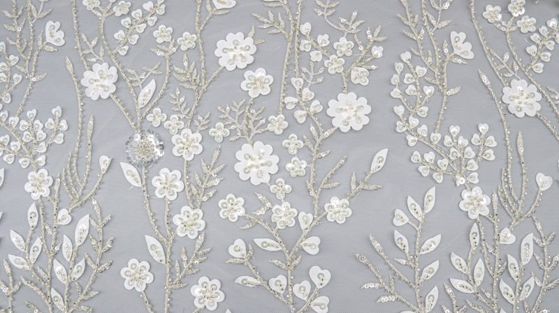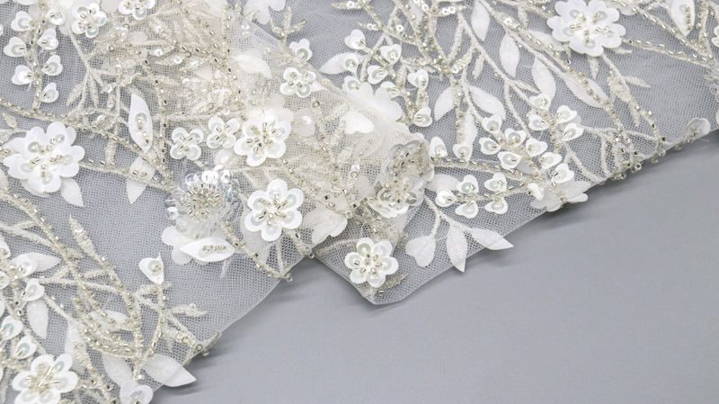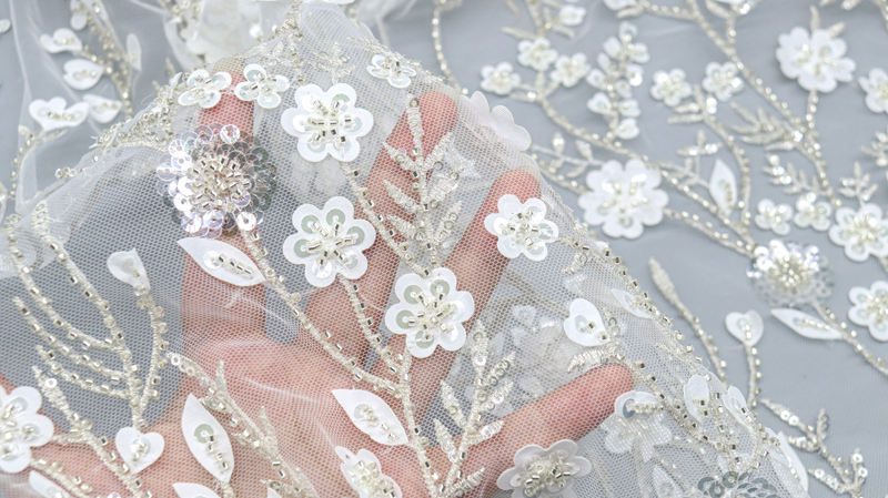 Hot Selling Polyester Plant Floral Fabric Decorative Sequin Lace Fabric for Wedding Dress