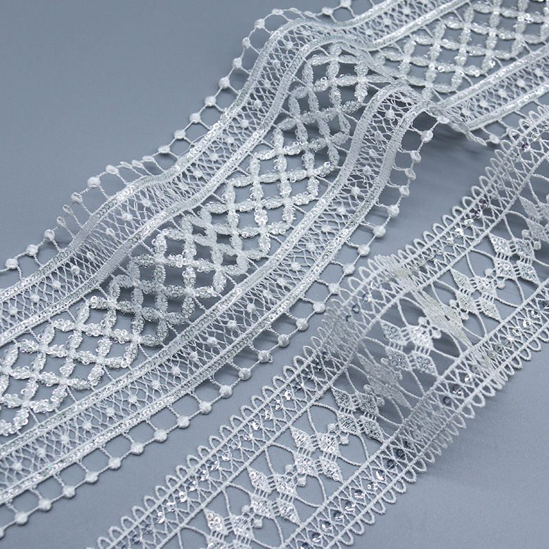 Elevate your wardrobe with our Hot Selling Water Soluble Lace Eyelet Fabric. Crafted from 100% polyester, this exquisite embroidered lace trimming adds elegance to dresses, blouses, and home decor. Perfect for crafting unique garments and accessories, its delicate design enhances any project with a touch of sophistication and charm.