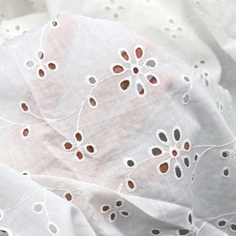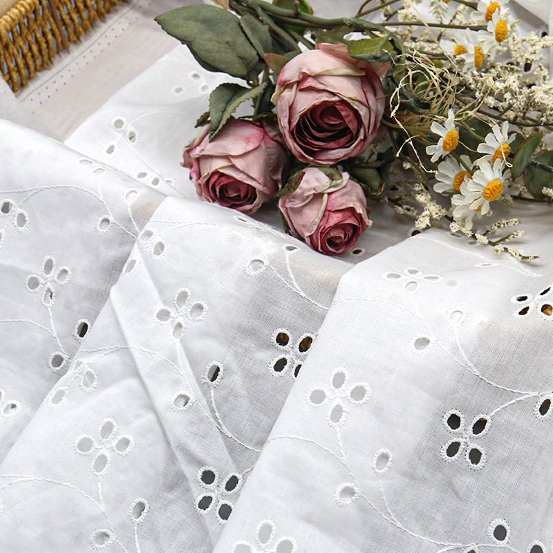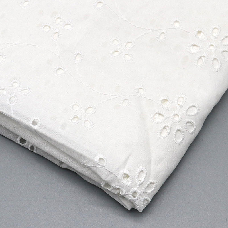 New Design Popular Eyelet Flower Embroidery Fabric Cotton Fabric for Summer Dress
