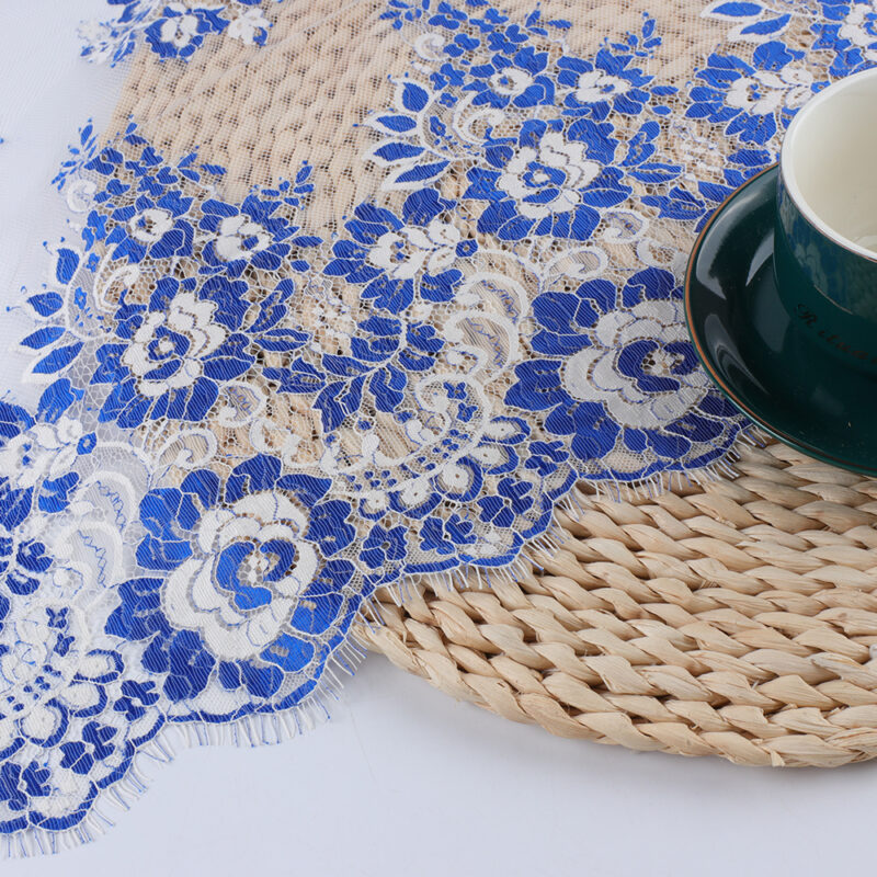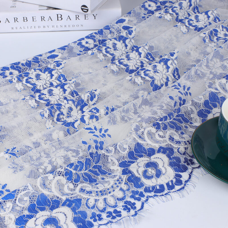 Inspired by the timeless elegance of European botanical gardens in full bloom, our Royal Blue Floral Nylon Lace Fabric captures the romantic essence of delicate wildflowers dancing in the breeze. The intricate floral motifs echo the graceful beauty of vintage French lace, while the vibrant royal blue hue adds a modern, sophisticated twist to this classic design.